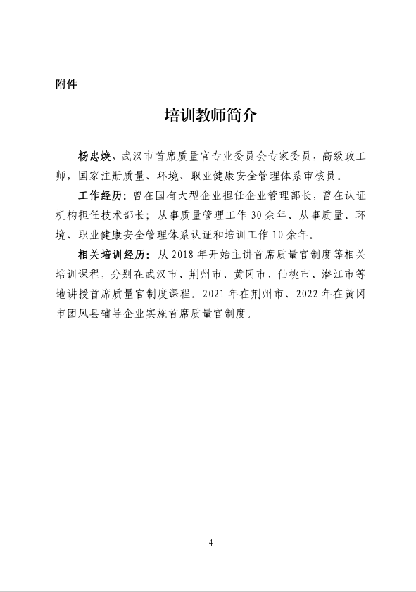 關(guān)于舉辦武漢市企業(yè)首席質(zhì)量官培訓(xùn)的通知(第十二期)